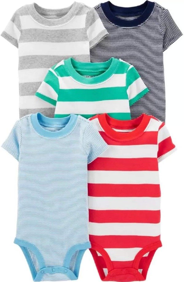 CARTERS. Set de 5 bodies manga corta de algodón.