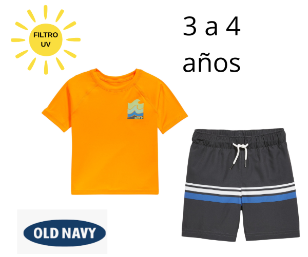 OLD NAVY . Conjunto de remera y short de baño con filtro solar.